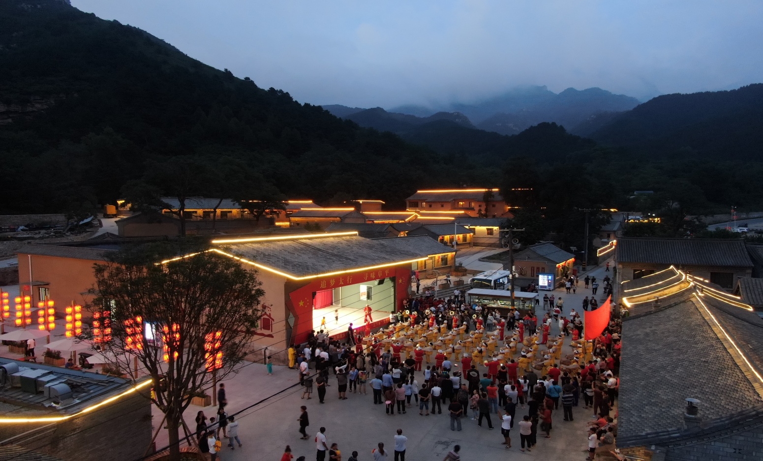 三是打造特色生态旅游业。在做好土地文章的同时,骆驼湾村利用全面改造后的新环境和临近天生桥瀑布群4A级景区的地理优势,以每年每平米100元的价格租赁民宿68家,打造休闲旅游业态20多个,40多种小吃,249个床位,由骆驼湾顾家台旅游有限公司与寒舍集团的专业经营团队,统一管理经营。辐射带动95名村民务工,其中骆驼湾村24人(建档立卡户20人)。自2019年五一开业以来,累计接待游客达20万人次,成功举办文艺演出和体育赛事等大型活动,聚集提升了人气,骆驼湾已经成了生态旅游的打卡地。