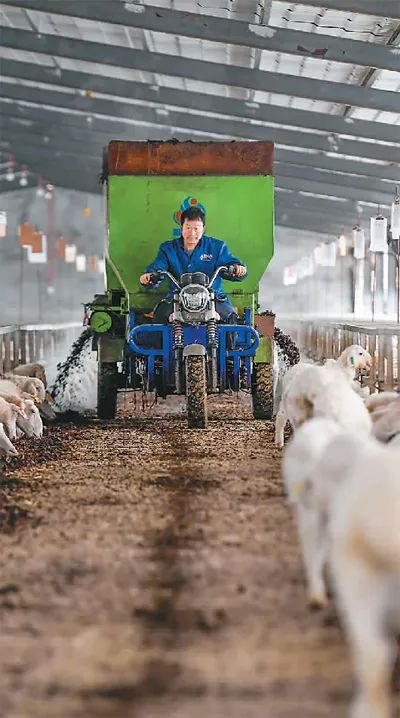 江西省樟树市刘公庙镇北坑村铖铖养羊场的工作人员在给湖羊喂食。该市围绕“一村一品、一镇一业”思路,打造食用菌、湖羊、中药材等特色产业项目。周 亮摄(人民图片)