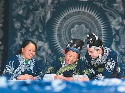 贵州省丹寨县把非遗技艺与乡村振兴有效结合,设立非遗工坊,采取“非遗+文创”的方式设计、制作旅游文创产品,推动苗族蜡染、银饰锻造、竹编鸟笼等非遗技艺的保护与传承,并为掌握非遗技艺的村民在村中提供创作、创业平台,实现本地就业。图为村民在该县龙泉镇卡拉村的苗族蜡染工坊内画蜡画。新华社记者 杨文斌摄