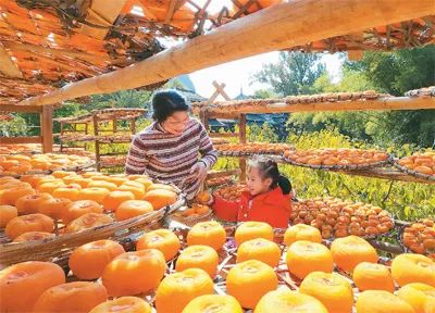 广西壮族自治区恭城瑶族自治县积极推进农旅融合,发展壮大月柿特色产业,目前全县月柿种植面积约22万亩,“月柿”特色乡村旅游景点20多个,吸引众多游客前来观光游览。图为游客在该县莲花镇红岩村体验晾晒月柿柿饼。周秀鱼春摄(人民视觉)