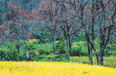 近日,浙江省绍兴市诸暨市枫桥镇王村的柿子红了,吸引众多游客前往拍照留影,红红的果实挂满枝头,成为秋日里一道亮丽风景。图为村民在采摘柿子。