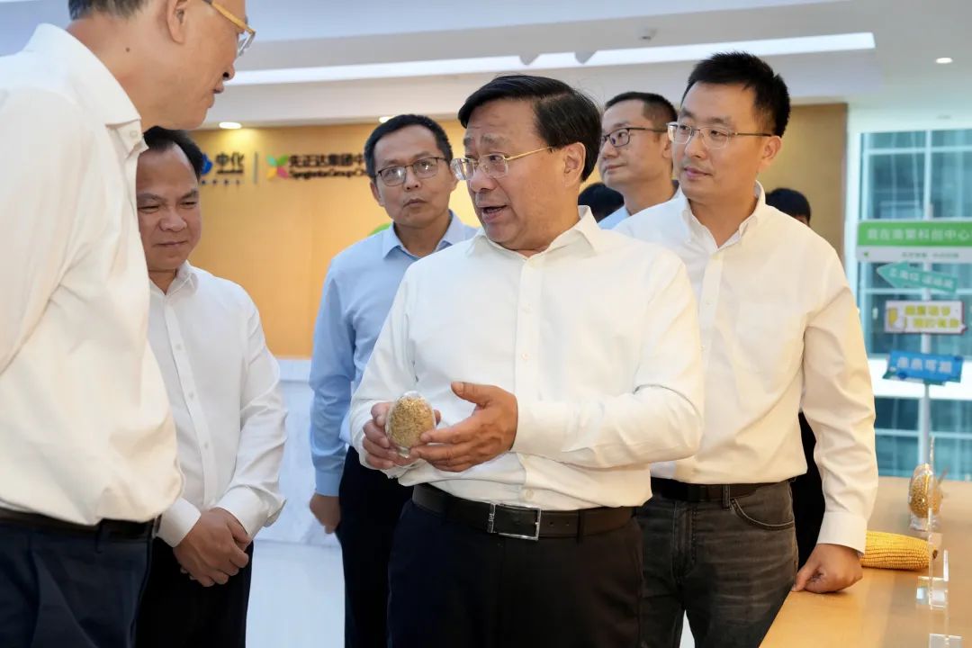 中种集团是全国首批育繁推一体化种业企业,近年来持续加强品种攻关,培育出耐盐碱大豆、低镉积累水稻等新品种。韩俊现场查看有关品种,了解集团创新发展及共建南繁硅谷情况,勉励中种集团对标国际一流种业企业,培育推广更多高产优质新品种。他强调,企业是种业创新的主体,要着力推进企业主导的产学研深度融合,大力培育种业领域科技领军企业,支持企业承担重大项目,深化科企协同创新,抓好科研成果转化应用,加快构建商业化育种体系。