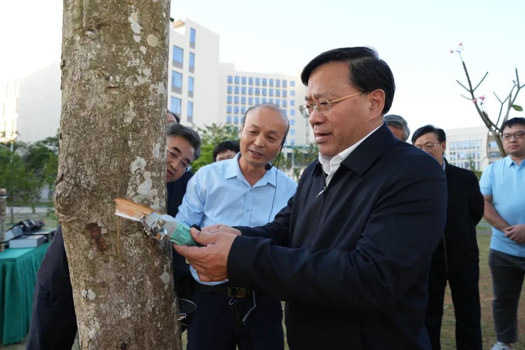 中国热带农业科学院是国家级综合性热带农业科学研究机构,近年来持续推进热带农业科技创新,取得一批突破性成果。韩俊先后来到橡胶研究所、环境与植物保护所调研,走进胶园实地了解高产橡胶树品种培育、特种天然橡胶加工、机械割胶等情况,在实验室听取病虫害监测与绿色防控、农业环境监测与污染治理等方面的研究进展,并主持召开座谈会,与热科院科研人员深入交流。韩俊对中国热带农业科学院建院70周年表示祝贺,对热科院近年来在热带农业科技研发应用方面取得的成就表示肯定。他强调,要认真贯彻落实习近平总书记关于打造国家热带农业科学中心的重要指示精神,紧盯前瞻性战略性科技课题强化基础研究,尽快突破高性能天然橡胶生产等技术瓶颈,把科研成果转化为现实生产力。要继续做好“一所对一县”等技术服务工作,助力海南巩固拓展脱贫攻坚成果,服务海南自贸港建设和热区乡村振兴。要进一步强化热区农业科技国际合作,扎实做好技术援外和培训工作,持续提升国际影响力竞争力。要抓实人才队伍建设,进一步健全人才培养、选拔、使用和管理机制,最大限度激发人才创新创造活力。