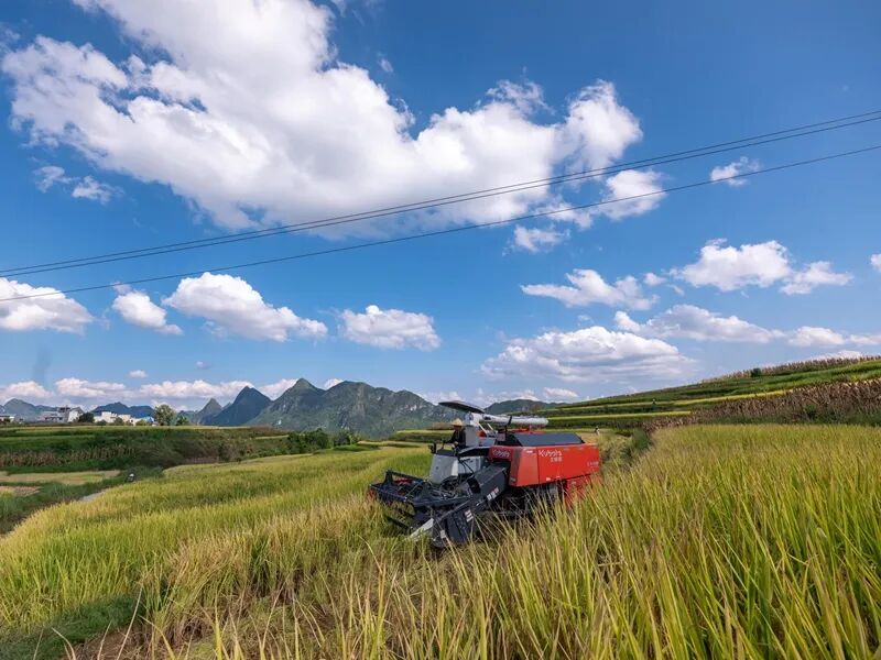 “现在用大型收割机打米,一亩田二十多分钟就能完事,以前人工打一亩得花一天!收完稻子,马上就能翻地种秋菜了。”看着稻田里轰鸣作业的机械,贵州省罗甸县沫阳镇访里村村民罗孔林满脸丰收喜悦。2025年,罗甸县始终将粮食安全放在农业工作首位,通过政策扶持、科技赋能、结构优化等举措推动粮食产业发展,全县粮食种植面积达32万亩,预计总产量9.42万吨。