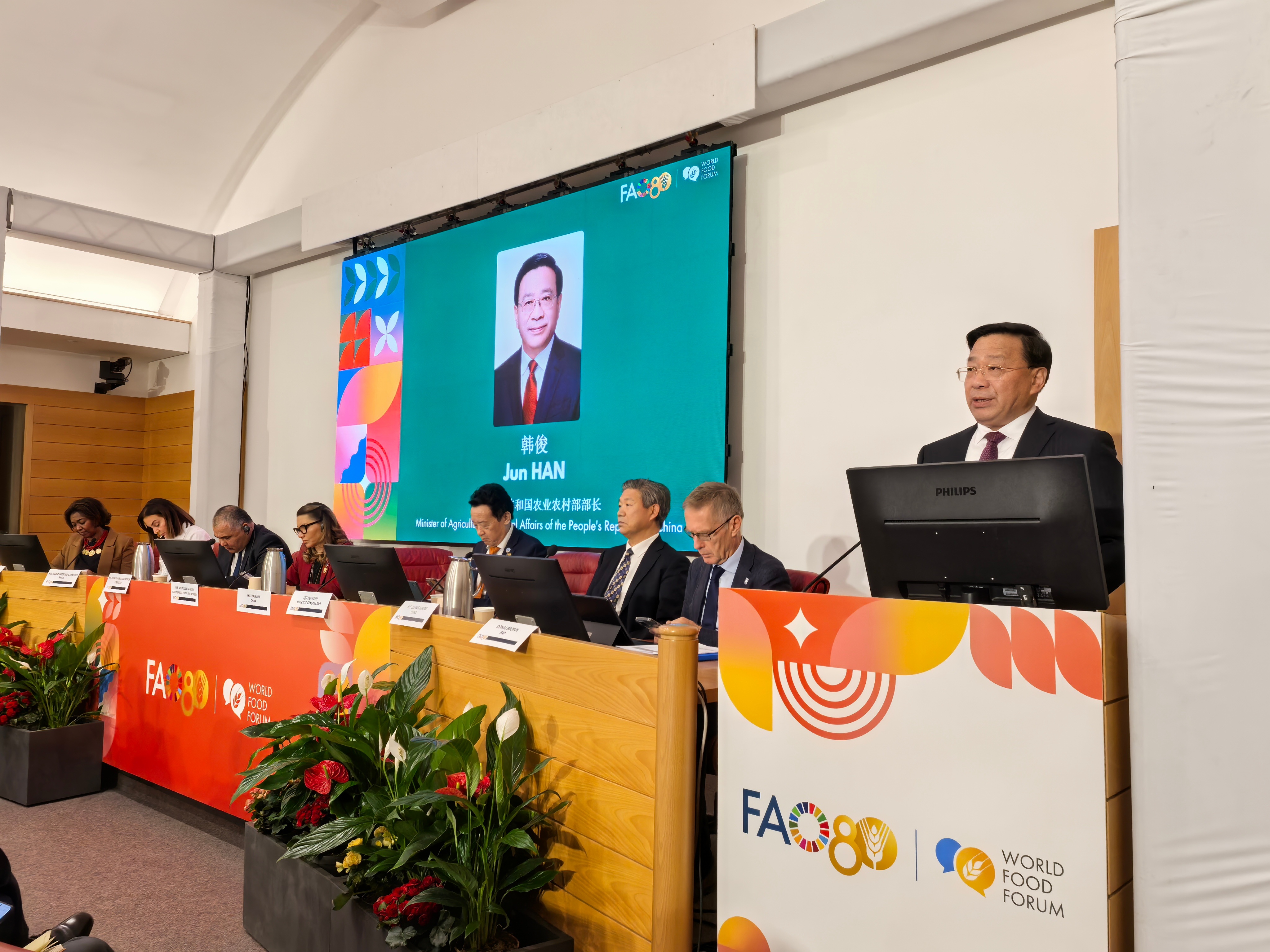 当地时间10月16日,农业农村部部长韩俊应邀出席联合国粮农组织在罗马举行的庆祝成立80周年暨世界粮食日特别活动并致辞。