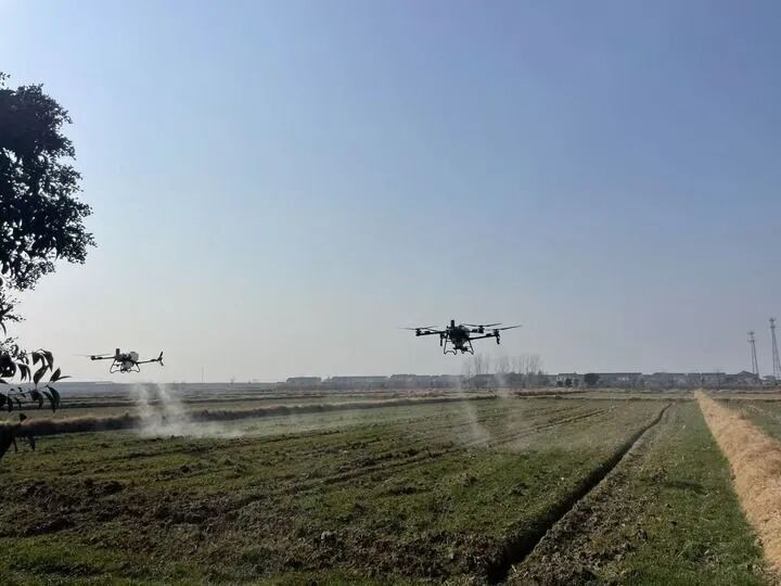 元旦前后,地处皖东的天长市迎来一场降温,温度跌至零下,这对当地农业来说可不是个好消息——下地将满两个月的油菜弱苗亟须喷洒肥料越冬。为此,平东林早早地做好了应急预案,用5台无人机仅花一天就完成超千亩田的施肥任务,稳稳地化解了2026年的第一个挑战。