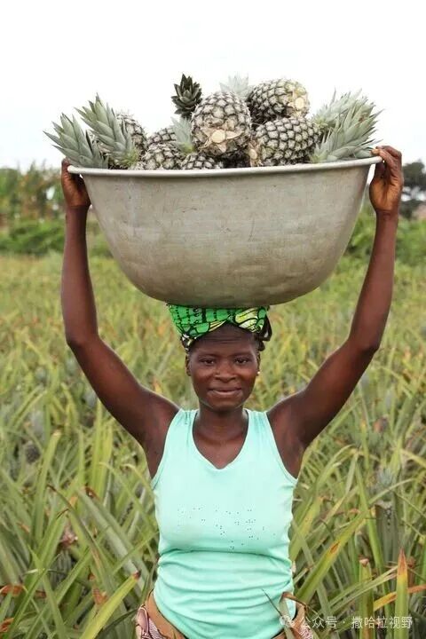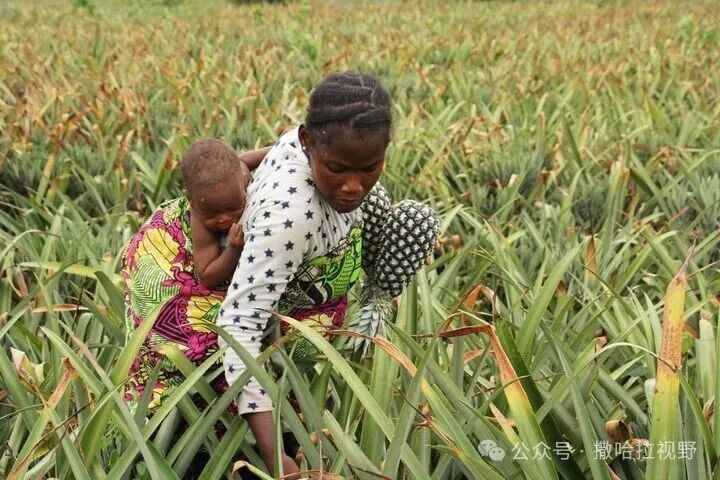 3月16日,农民在贝宁“甜面包”菠萝主产区泽镇的一片菠萝田里劳作。