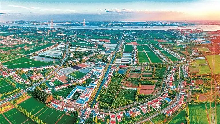 从沿江公路拐进江苏靖江新桥镇,过德胜桥,便入了德胜村。桥下河水清凌凌的,两岸是白墙黛瓦,连片的蔬菜大棚在远处泛着银光。
